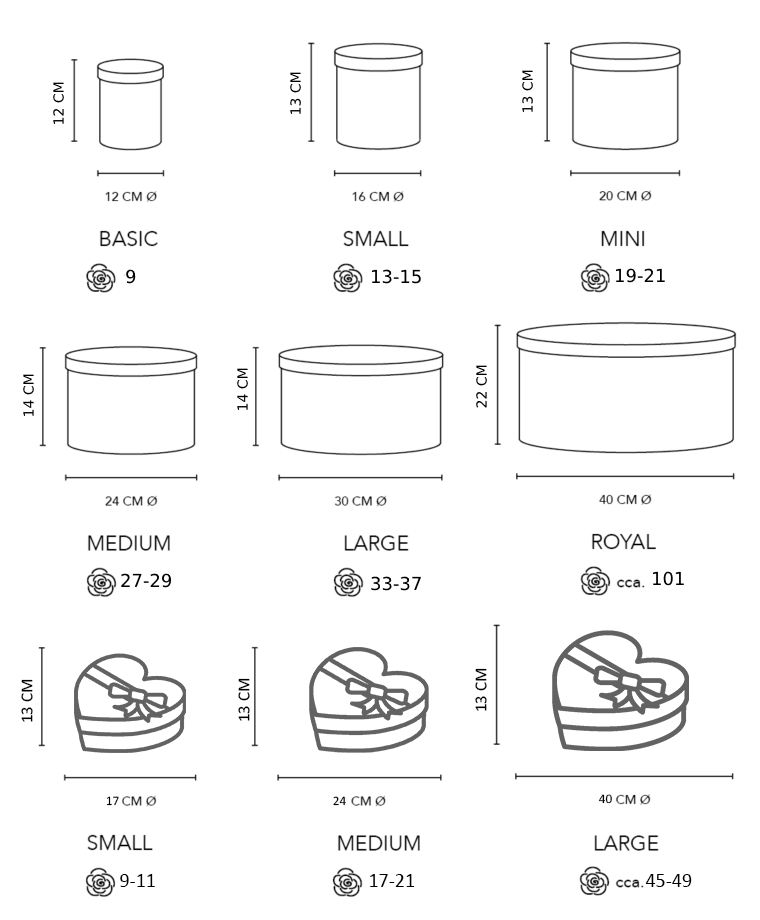 Opombe: ob nakupu se strinjate, da lahko cvetličar uporabi tudi drug odtenek cvetja in drugo barvo škatle, če ni na zalogi cvetja ali škatle kot na objavljeni sliki..
